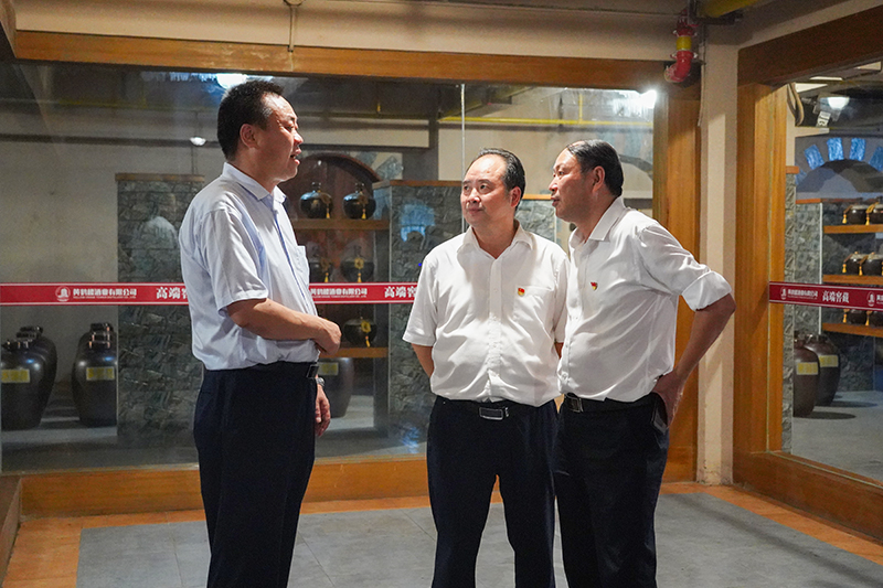 杜佐鵬一行參觀了天成坊釀造車間、名人酒窖、酒文化博物館和黨建文化館。許鵬詳細介紹了黃鶴樓酒的脈絡源流、釀造工藝和公司的發展現狀,并邀請杜佐鵬一行品鑒了72度大清香原酒和橡木桶酒。