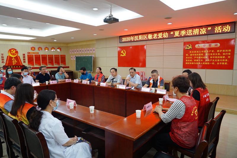 8月9日,漢陽(yáng)區(qū)敬老愛(ài)幼“夏季送清涼”活動(dòng)在漢陽(yáng)區(qū)琴斷口街七里一村社區(qū)舉行,區(qū)民政局黨委書(shū)記、局長(zhǎng)、區(qū)慈善會(huì)常務(wù)副會(huì)長(zhǎng)劉漢華,琴斷口街道辦事處黨工委書(shū)記趙亮出席會(huì)議。武漢市漢陽(yáng)醫(yī)院紀(jì)委書(shū)記易喜祥,黃鶴樓酒業(yè)副總經(jīng)理兼總會(huì)計(jì)師麻玉俠作為愛(ài)心企業(yè)代表參加會(huì)議。