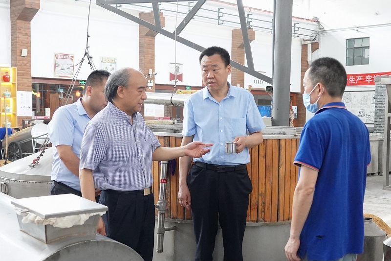 梁金輝調研了天成坊釀造車間等地,許鵬匯報了公司近來的運營情況、三地原酒產能及遠景規劃。