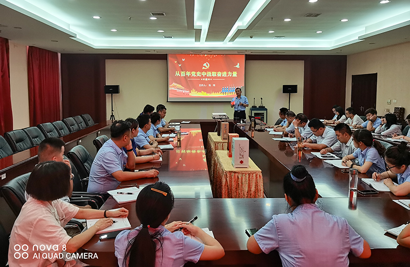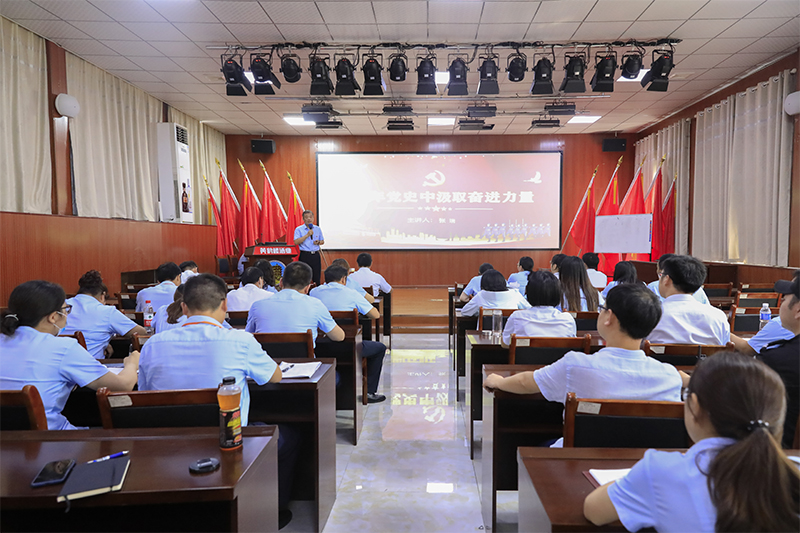 公司工會主席、黨工團中心副總監張瑞擔任活動講師。會上,張瑞以《從百年黨史中汲取奮進力量》為題,從中國共產黨的產生發展、新民主主義革命、社會主義革命、改革開放、新時代新征程、中國共產黨百年黨史發展等多個方面的成功經驗與啟示對黨史進行了深刻解讀。