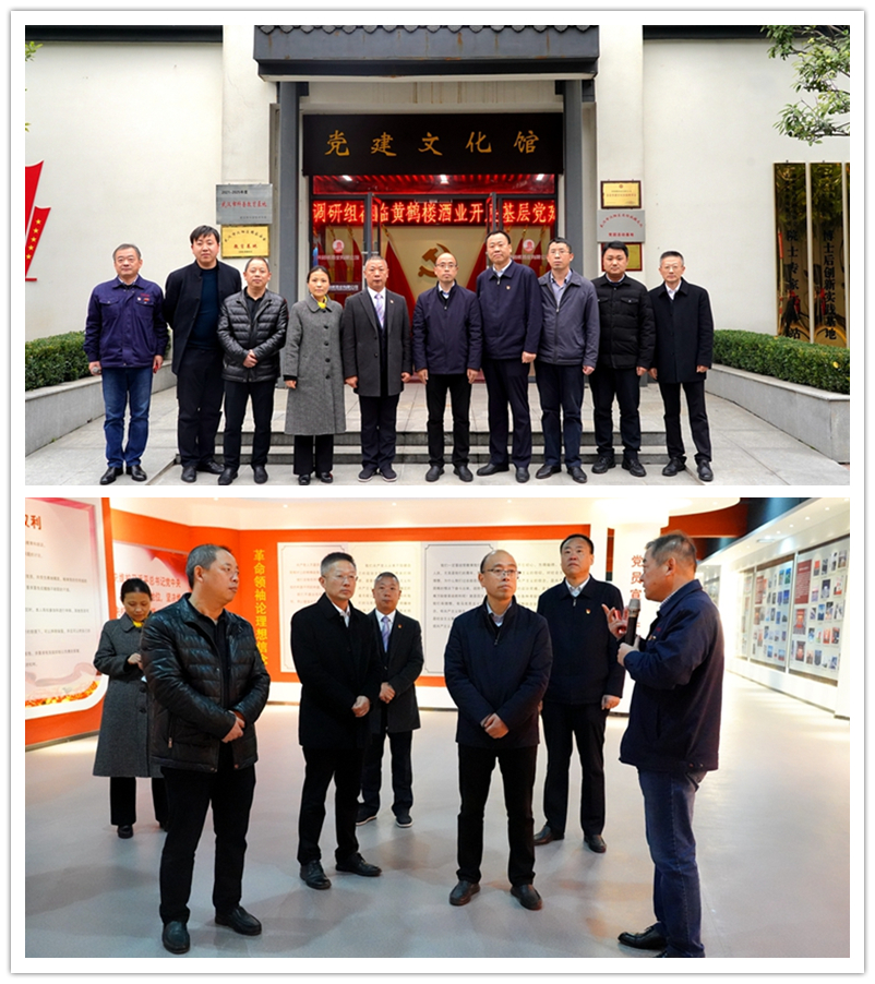 12月16日,湖北省委調研組組長、襄陽市委組織部副部長張再東,湖北省委黨建辦學會工作處處長、一級調研員覃敏,天門市委組織部副部長張正德,襄陽市委組織部組織二科副科長姜超一行到黃鶴樓酒業開展基層黨建綜合調研。武漢市委巡察辦副主任梅新斌,武漢市委組織部組織二處副處長肖何,漢陽區委組織部副部長李善華陪同調研,黃鶴樓酒業黨委書記、董事長許鵬,黨委委員、副總經理魏國參加調研。