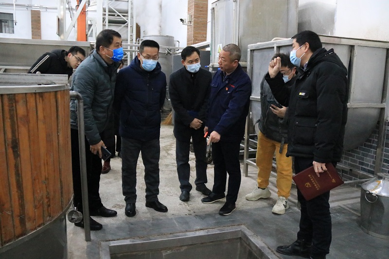 桂志強一行調研了天成坊釀造車間,了解了重點生產區域的消防設備設施運行情況,并查看了相關記錄。檢查中,魏國匯報了公司疫情防控、日常安全巡查及消防安全管理工作情況。