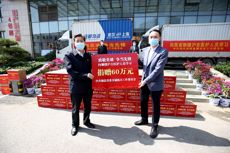 4月21日,省直機關工委舉行“致敬英雄爭當先鋒——向我省馳援滬吉醫護人員學習”物資捐贈活動。省委直屬機關工作委員會常務副書記陳正祥、副書記張建文,省衛生健康委員會黨組成員、副主任鄧小川,省慈善總會副會長范紅華出席活動。