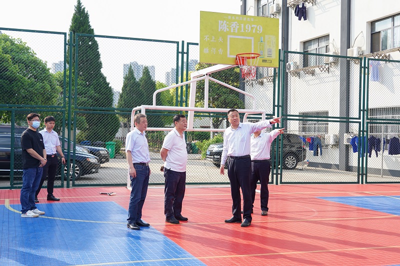 王建偉實地察看了園區多功能籃球場、單雙杠區域及其他戶外運動設施。許鵬匯報了園區運營情況和現有運動設施的整體配備情況。他表示,作為國家3A級旅游景區,園區一方面承接國內外旅游團和散客參觀,一方面承接公司客戶回廠游,隨著黃鶴樓酒知名度的提升,游客數量逐步增加,園區建設和運營也進一步完善。