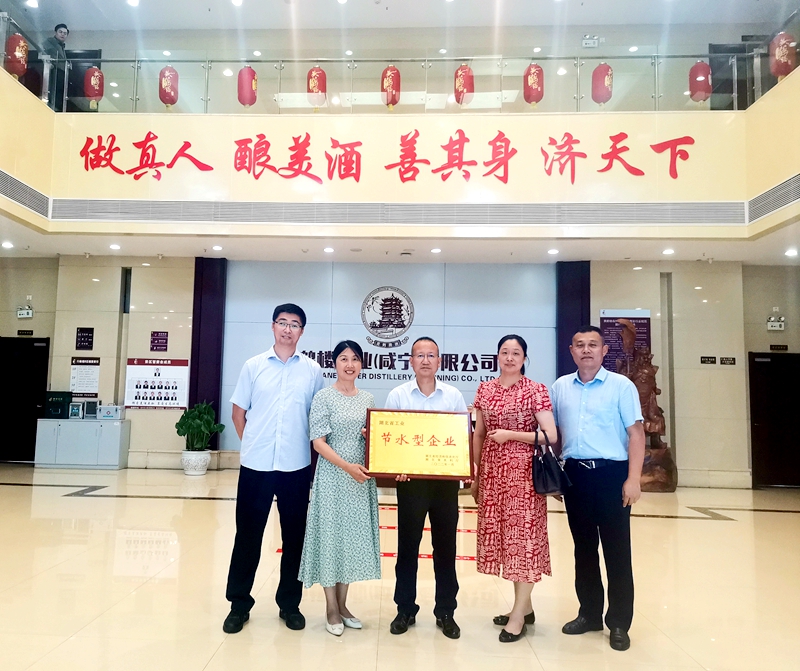 7月5日,咸寧市水利和湖泊局黨組成員、副局長蔡秋芬一行到黃鶴樓酒業(yè)(咸寧)有限公司頒發(fā)“湖北省工業(yè)節(jié)水型企業(yè)”榮譽牌,公司黨委委員、咸寧分廠廠長兼采購中心總監(jiān)謝毅代表企業(yè)參加授牌儀式。