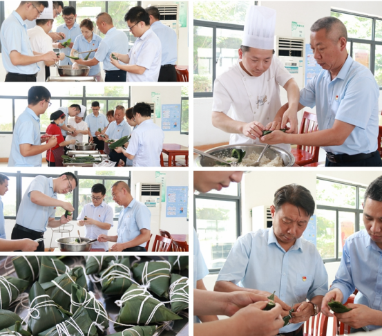 “把粽葉彎曲成漏斗,舀一些糯米放入,再用粽葉壓住開口,最后用繩子緊緊綁起來。”活動現場,行政黨支部黨員、發展對象、積極分子在食堂師傅的講解指導下,紛紛動起手來包粽子,感受端午文化底蘊、堅定民族文化自信。