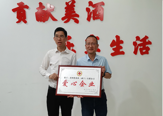 會上,胡漢雄代表咸寧市紅十字會向黃鶴樓酒業(yè)(咸寧)有限公司授予咸寧市“愛心企業(yè)”稱號。