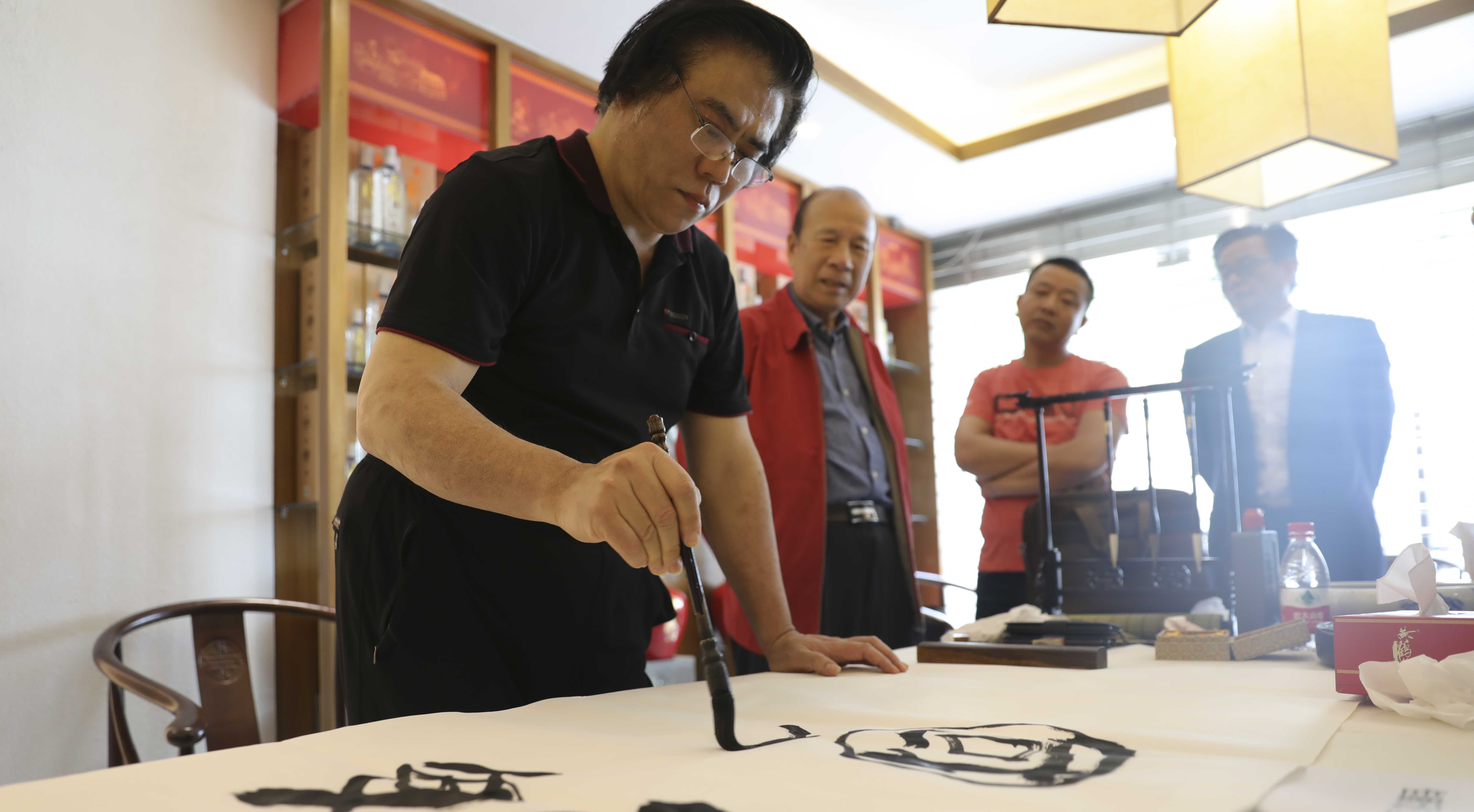 參觀結束后,作為香港文藝界的領軍人物,張孝勇揮毫潑墨,向黃鶴樓酒敬贈了墨寶題詞。