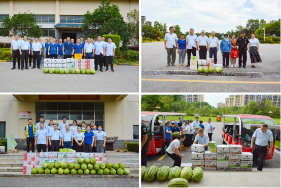謝毅一行到釀造車間、包裝車間、綠化、保潔等部門,將西瓜、清涼飲料、防暑藥品等物資送至一線員工手中,并叮囑他們在做好本職工作的同時,一定要注意防暑降溫,合理安排工作時間,防止高溫中暑,確保自身安全。