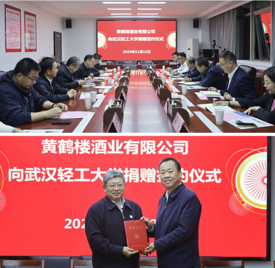 11月12日,黃鶴樓酒業(yè)與武漢輕工大學(xué)開展捐贈簽約儀式。武漢輕工大學(xué)黨委書記王立兵,黃鶴樓酒業(yè)黨委書記、董事長許鵬出席儀式。