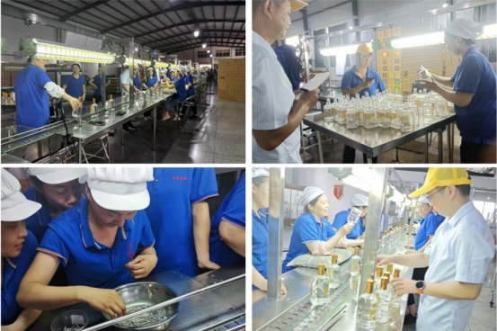 競賽現(xiàn)場,參賽選手分別在“火眼金睛-驗(yàn)酒比拼”“心靈手巧-鉚釘分類”“質(zhì)檢能手-酒瓶缺陷識別”三個(gè)項(xiàng)目上比拼操作技能,車間管理人員擔(dān)任裁判和記錄員,現(xiàn)場氛圍熱烈,緊張有序,經(jīng)過激烈的角逐,共產(chǎn)生優(yōu)勝人員11人。