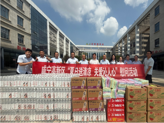 8月6日,咸寧高新區(qū)黨工委委員、紀(jì)監(jiān)工委書記佘中宏一行到黃鶴樓酒業(yè)咸寧子公司開展“夏日送清涼 關(guān)愛沁人心”主題慰問活動(dòng),公司酒體設(shè)計(jì)總工程師李久洪、釀造管理中心總監(jiān)助理史健陪同慰問。