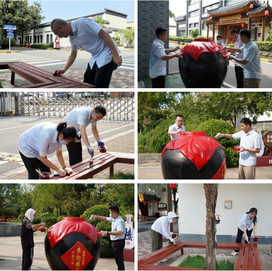 刷漆活動中,大家不懼高溫、不畏酷暑,對廠區(qū)內(nèi)景觀凳、景觀酒壇等進(jìn)行打磨刷漆、翻新維護(hù),想在前、做在前、干在前,深刻踐行公司“三個(gè)人人”行為理念。