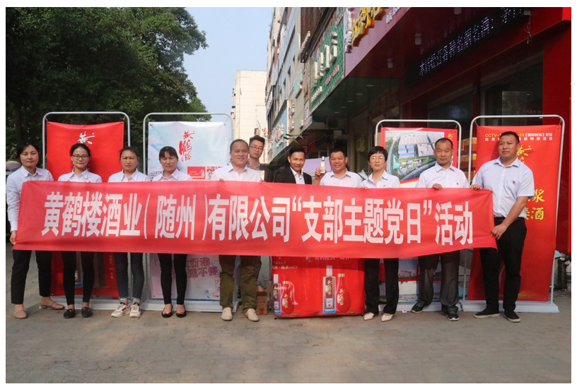 4月25日,隨州分廠黨支部聯合隨州營銷中心在隨州曾都區漢東星都小區開展“黃鶴樓酒走進社區”支部主題黨日活動。黃鶴樓酒業黨委委員、隨州分廠黨支部書記閔波平,隨州營銷中心總監助理戴道國及隨州分廠全體黨員、積極分子參加活動。
