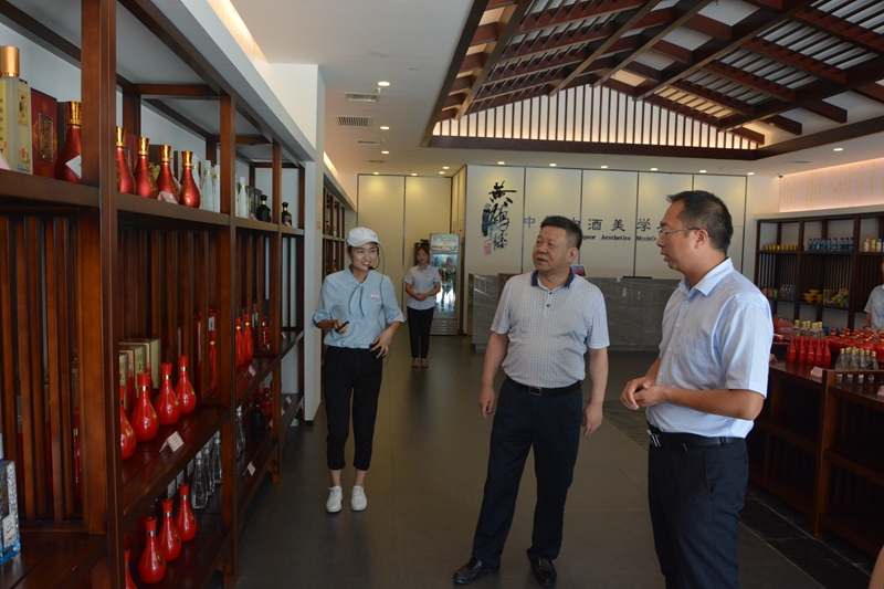 7月25日,湖北省經濟和信息化廳副廳長孟春林一行調研黃鶴樓森林美酒小鎮,黃鶴樓酒業咸寧分廠廠長李良陪同調研。