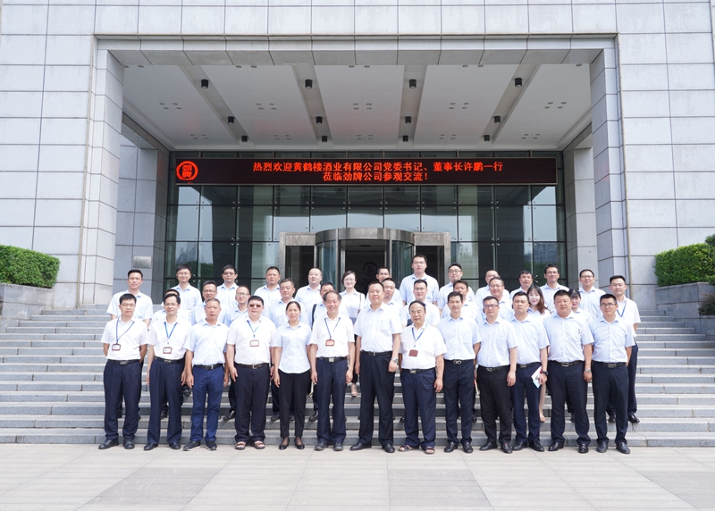 8月12日,黃鶴樓酒業黨委書記、董事長許鵬,高管麻玉俠、黃曉文、王超、魏國帶領公司管理人員一行到勁牌有限公司參觀考察。勁牌有限公司董事長、總裁吳少勛,副總裁夏振千、王楠波,健康白酒事業部總經理田立剛,營銷管理中心總經理李惠蘭接待來訪。