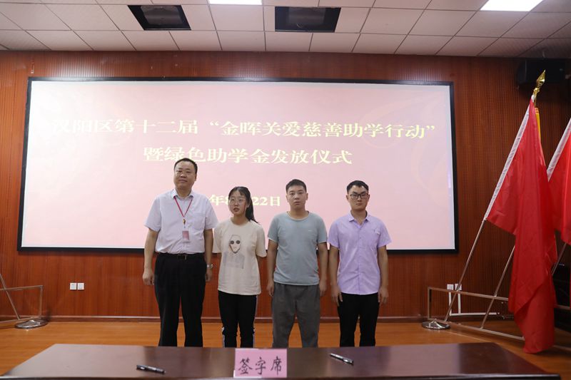8月22日,漢陽區第十二屆“金暉關愛慈善助學行動”暨“一個都不該少”綠色助學金發放儀式在黃鶴樓酒業舉行。湖北省關工委辦公室主任尹明志,武漢市關工委常務副主任羅友松,武漢市關工委辦公室主任向婭麗,武漢市慈善會副會長何鳴,漢陽區政府副區長皮惠蘭,漢陽區關工委主任李德祿,黃鶴樓酒業黨委書記、董事長許鵬,總經理助理魏國出席活動。漢陽團區委書記肖瀟主持會議。